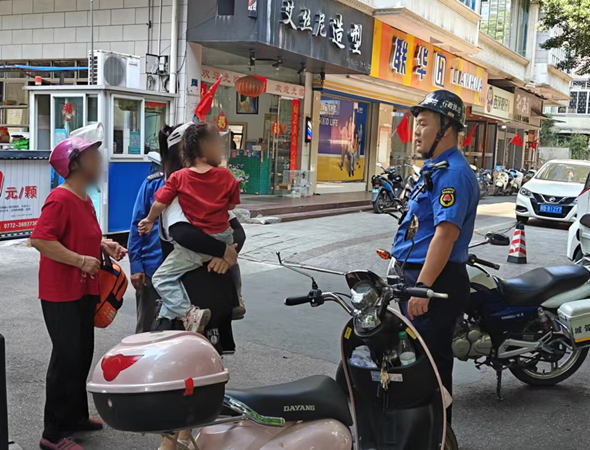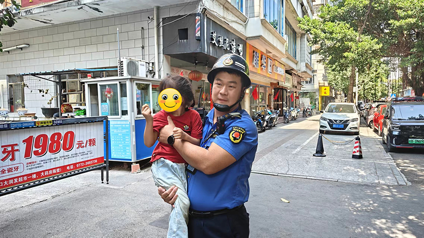 执法队员边安抚女子情绪,边询问走失女孩的外貌服饰特征。在得知走失女孩只有5岁且有语言方面障碍的情况后,判定小女孩应该不会走得太远。于是让女子在映山街继续寻找,自己则往景行、斜阳路方向寻找,同时通过对讲机呼叫附近同事一起帮忙。