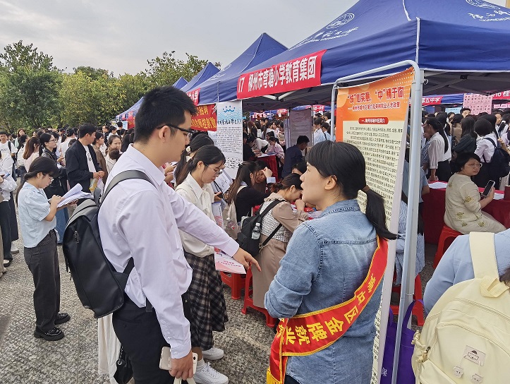 11月16日,柳州市城中区人力资源和社会保障局联合城中区教育局及12所中小学,组团赴广西师范大学(雁山校区)参加2025届师范类毕业生就业双选会(桂林专场)。当天,提供岗位51个,其中实名编制36个,聘用教师控制数15个,吸引420名高校毕业生投递简历,与47名高校毕业生初步达成签约意向。