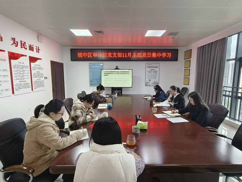 图为城中区审计局党支部开展11月主题党日集中学习