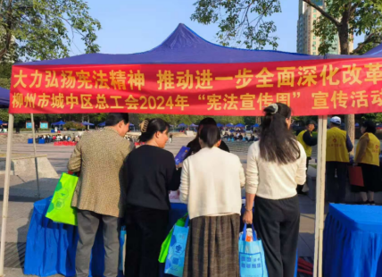 (城中区总工会讯 通讯员邹诗薇报道、摄影)2024年12月4日,柳州市城中区总工会积极响应国家宪法日的号召,开展以“大力弘扬宪法精神·推动进一步全面深化改革”为主题的宪法宣传周集中宣传活动。此次活动旨在进一步增强广大职工的宪法意识,推动法治精神深入人心。城中区人大常委会党组副书记、副主任,区总工会主席张世源参加活动。