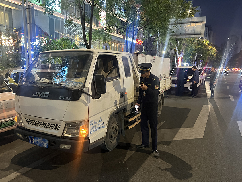 当天下午,市民经过清和路乌托邦音乐城附近时,看到一名男子提着一桶泔水往一辆停在非机动车道上的微型货车里倒。他便将情况反映给柳州市智慧城管平台。
