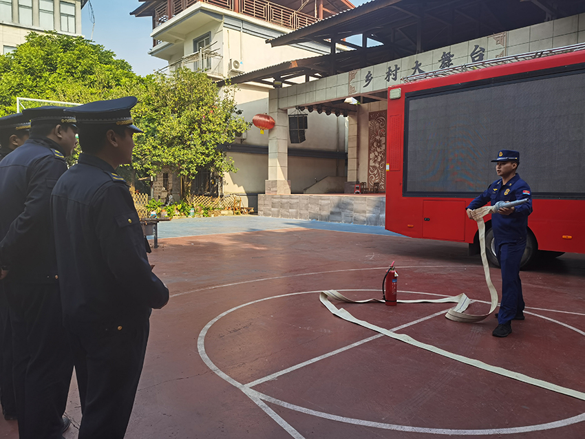 (城中区执法局讯 通讯员邓湖广报道)12月4日,在环江滨水大道雷村屯的广场上,一名消防员手持灭火筒,正在讲解灭火要点,围在他身边听课的“学生”有城中区综合行政执法局旅游中队的队员和雷村屯的村民。这是一场正在进行的消防演练,由城管部门和当地村委联合组织。旨在通过实战演练,提高执法队员和村民的安全意识和在火灾等突发事件中的应对能力。