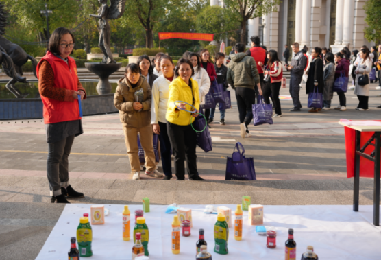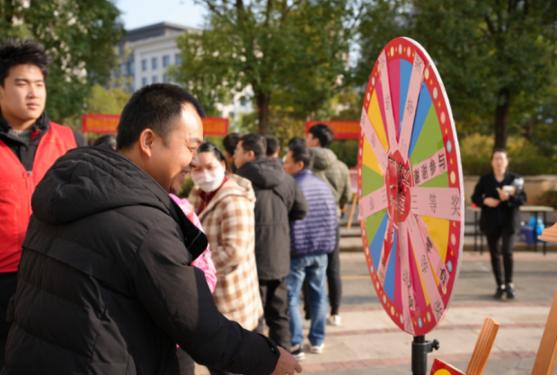 随后,游园活动正式拉开序幕。幸运掷骰子、精准投壶、快乐丢沙包、运动大转盘、开心套圈等游戏项目轮番上阵,职工们积极参与,现场气氛热烈。这些游戏不仅考验了职工们的反应速度和协调能力,也增进了同事间的友谊和团队合作精神。