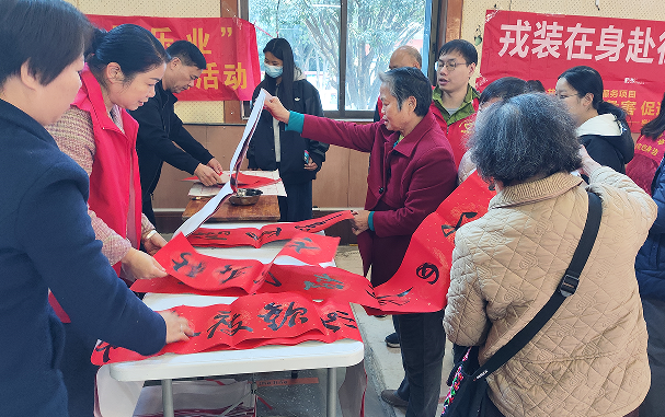 (公园街道办工会讯 通讯员韦婉玲报道)为营造喜乐祥和的节日氛围,弘扬优秀传统文化,增进社区群众的文化交流与情感联结,1月17日上午,公园街道柳侯社区工会组织开展写春联、送“福”字活动。