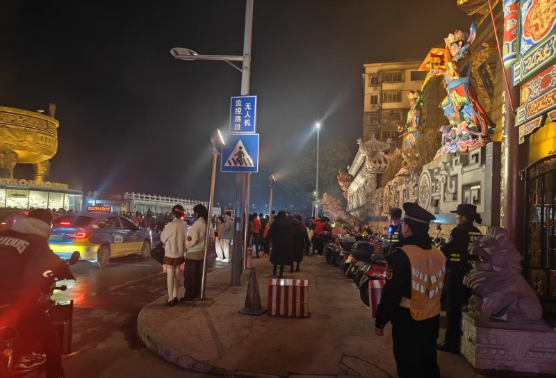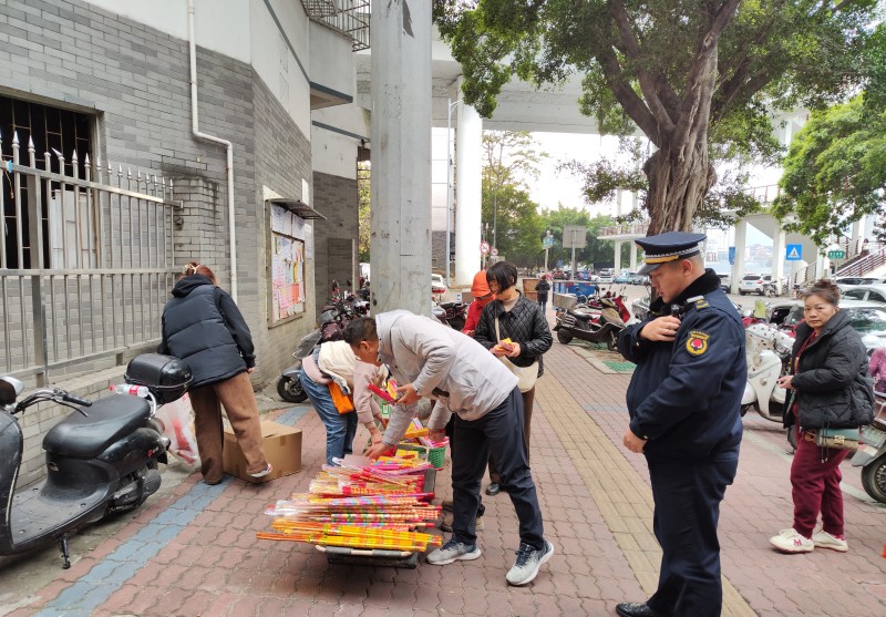 “阿姨,现在来西来寺祈福的人很多,请你把摊子摆整齐,不要挤占人行道。”1月29日,大年初一的凌晨,滨江西路西来寺附近人头涌动,许多市民前来寺庙烧香祈福。而专做“初一十五”生意的小贩们也早早在附近的便民点摆好摊点等客上门。一些小贩为了让自己的摊点更加“显眼”,将摊点摆到了规范点外,执勤的执法人员发现后及时进行纠正,对夹在人群中的游商,也都进行了劝阻制止,保障了现场的市容秩序。