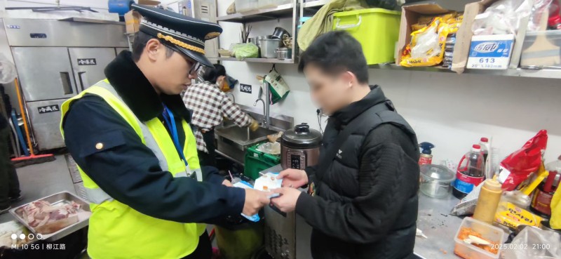 “老板新年发大财,安全意识也莫忘记啵。”春节期间,不少餐饮店面也依然开门营业,对这些餐饮店面,执法人员上门检查燃气使用情况,宣传燃气安全使用知识,督促业主做好“门前三包”工作,为市民游客提供整洁干净、安全卫生的消费环境,保障欢乐祥和的节日氛围。
