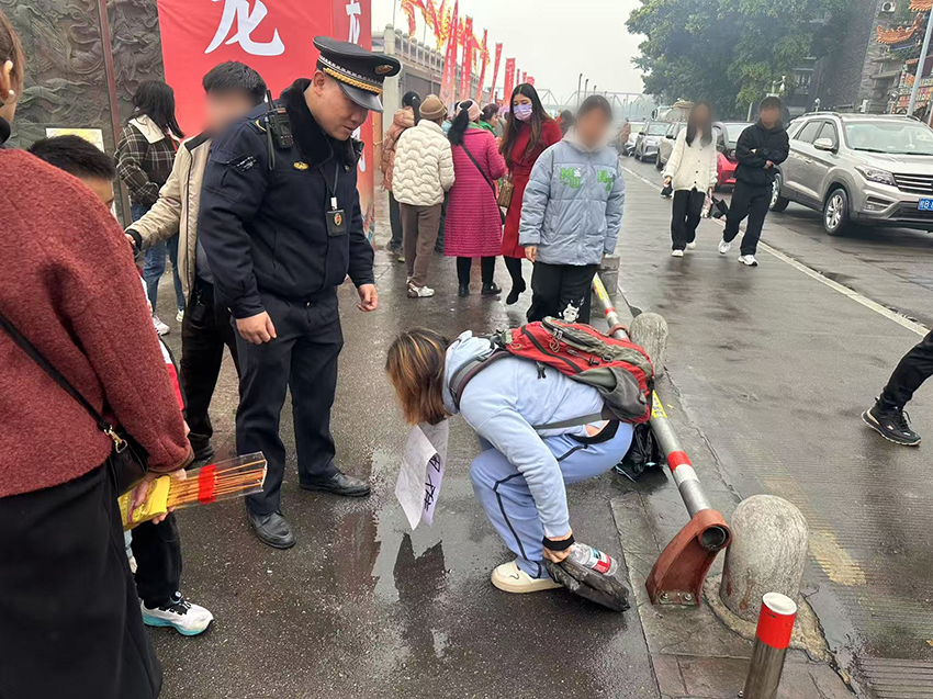 “您好,请你把占道的物品收好,以免影响道路通行。”在熙熙攘攘的人群中,不时可见身着制服的执法队员。他们或穿梭在人群中维持秩序,或耐心地为游客指引方向,或对不按规定停放车辆的市民进行制止纠正,指引他们将车辆有序停放到泊位线内。成为活动中的一道独特的风景线。