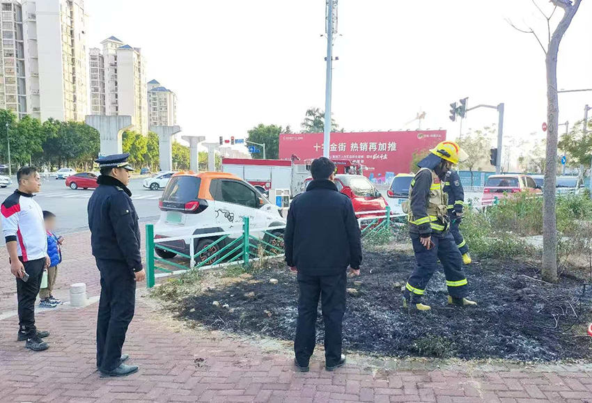 几分钟后,接警的消防人员也赶到现场展开灭火作业。经过20多分钟的努力,火势被众人合力扑灭。