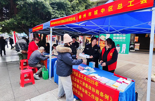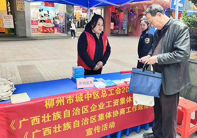 (城中区总工会讯 通讯员张宇晨报道)为推进柳州市城中区工资集体协商,扩大集体协商的社会影响面和覆盖面,深化共建共治共享的协商理念。3月7日,柳州市城中区总工会到2025年城中区春风行动专场招聘会暨“‘城’就未来”人才招聘会现场开展集体协商工作规范、集体协商条例宣传活动。