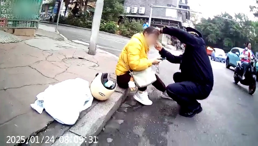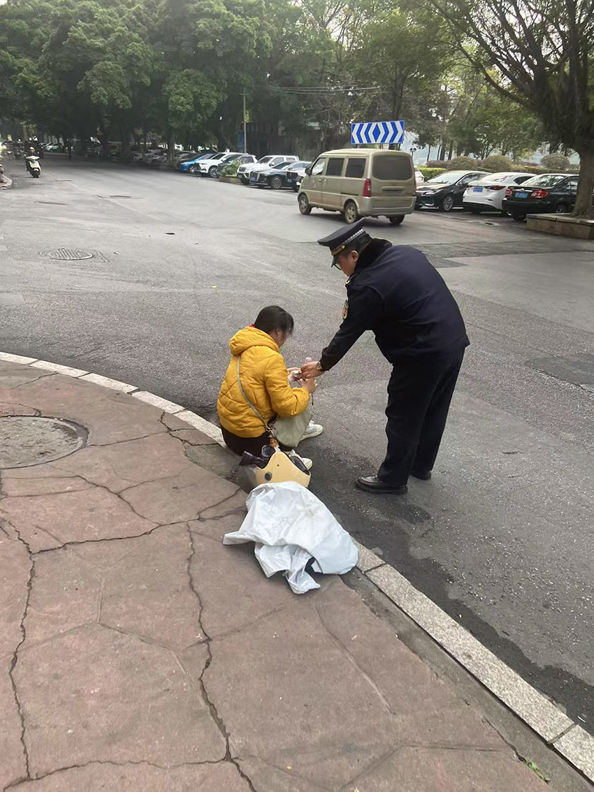 随后,执法人员帮她扶起倒地的电车和捡起掉落在地面的物品,又买来矿泉水让她喝水缓解情绪。