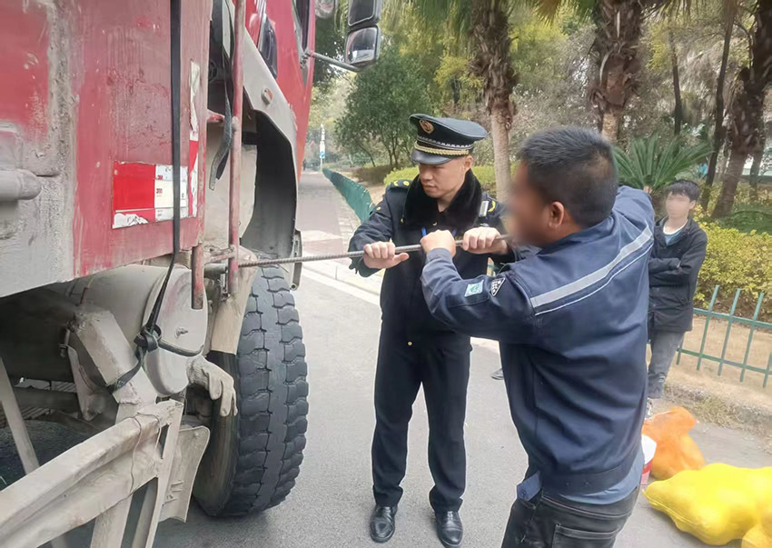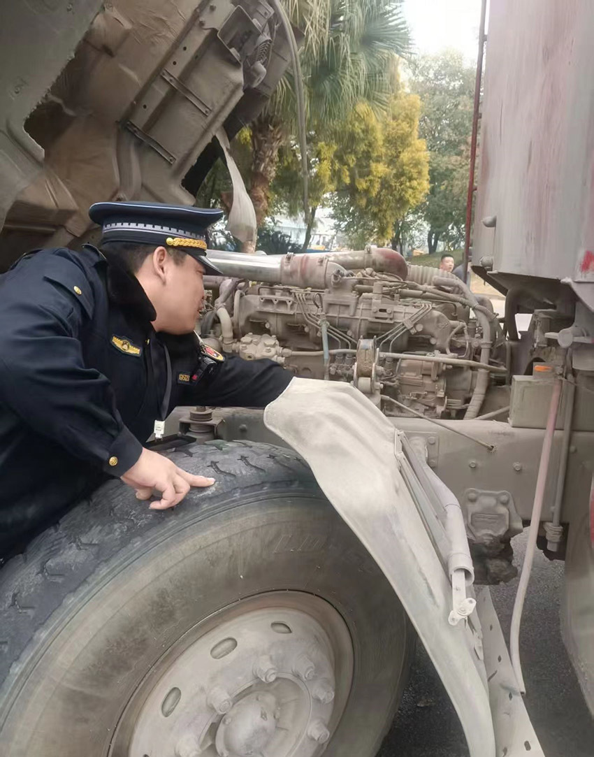然而,加了油的大货车依然发动不起,当事小贩多次尝试发动均未成功。见状,汽车兵退伍的执法人员申卫成提醒他大货车加油后还需要排出油箱里的空气才行。但当事小贩左右摸索了一阵,却毫无头绪。他一脸尴尬地表示自己是一名新手司机,从没有过车辆维护方面的经验,希望执法人员能帮忙。