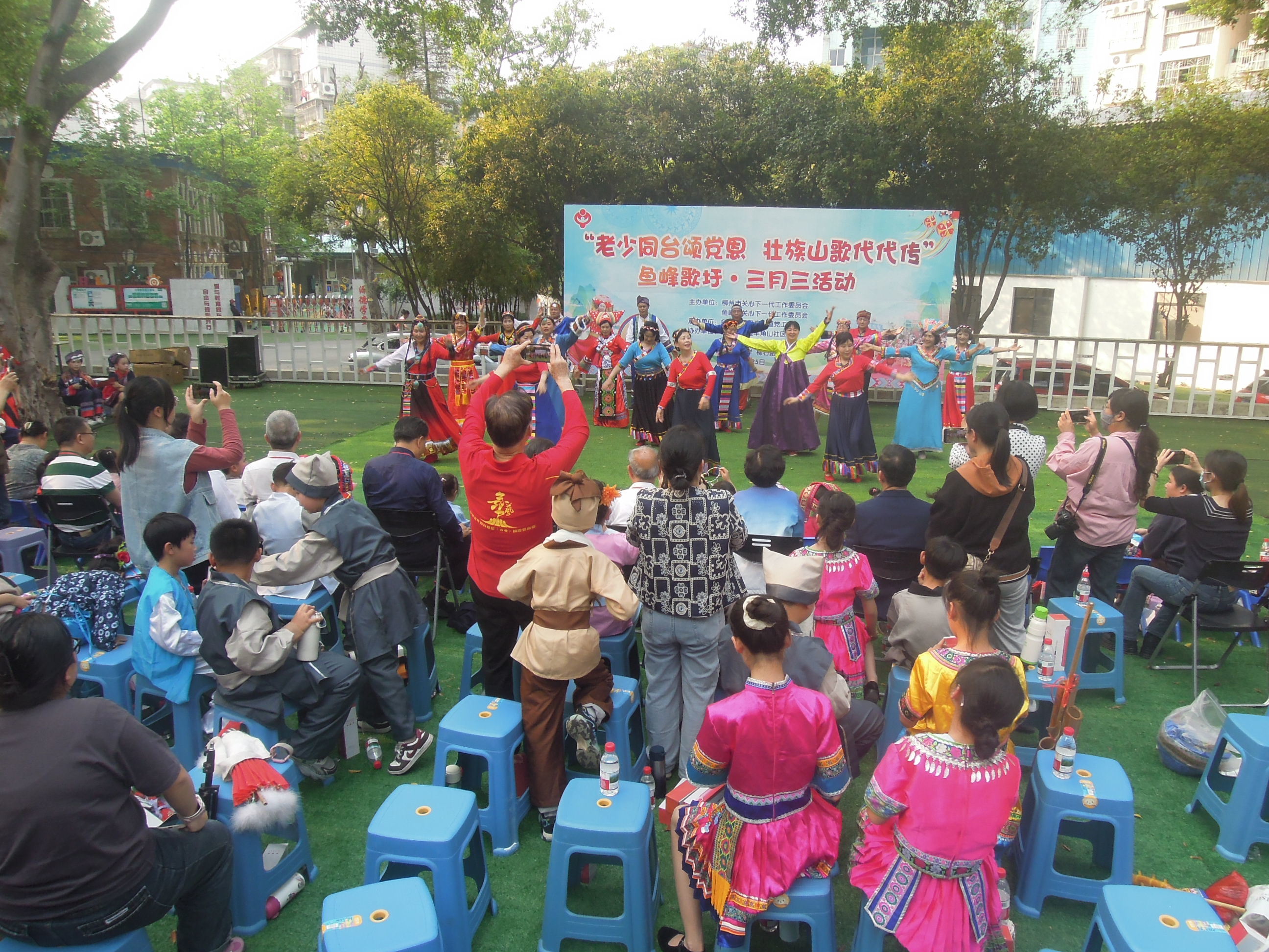 (区关工委办讯 通讯员程中)3月25日,城中区关工委组织五老志愿者参加市关工委在五里亭街道羊角山社区举行的“老少同台颂党恩 壮族山歌代代传”——鱼峰歌圩•三月三活动。