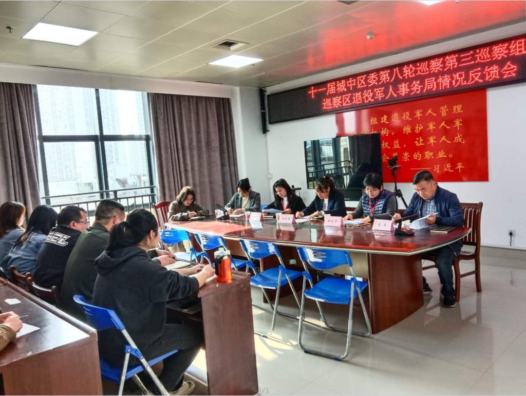 根据巡察工作领导小组的安排,2025年4月2日上午,十一届城中区委第八轮巡察第三巡察组向区退役军人事务局反馈巡察情况。会上,区委第三巡察组组长钟剑华对巡察情况进行了反馈,区委组织部副部长杨茜麟代表巡察工作领导小组成员就如何做好巡察整改工作提出要求,区退役军人事务局王兵局长主持会议并就做好巡察整改工作表态发言。