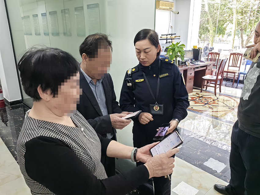 半个多小时后,一男一女两名上了年纪的市民来到了河东中队,男子自称是失主。因为男子没有携带身份证件,执法人员让他从通讯软件向陪他来认领手机的朋友发送一元钱红包,通过其正确输入支付密码核实了身份信息后,交还了手机。
