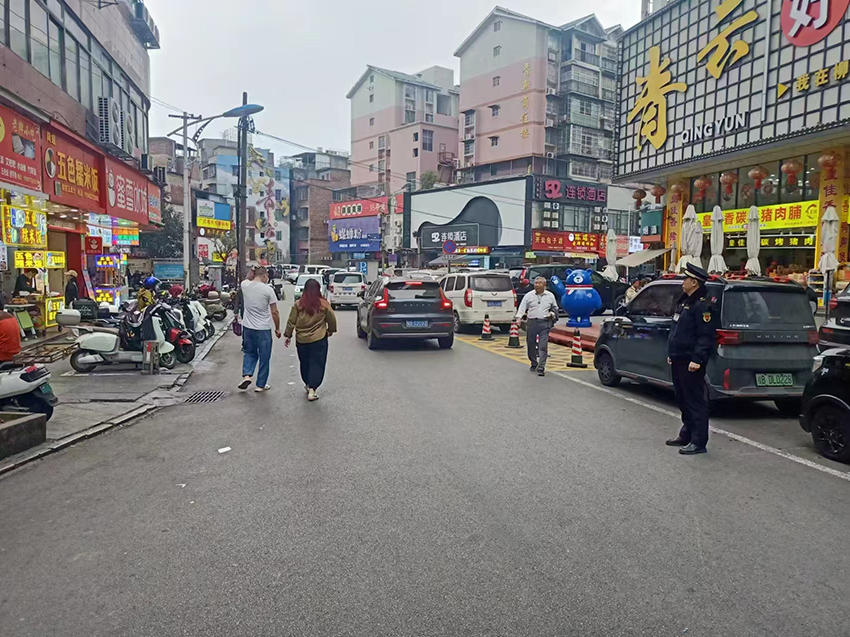 3月12日上午10点左右,青云路附近车流如织,行人络绎不绝,一片熙熙攘攘的热闹景象。人群中,几名执法人员正在值勤。此前道路两侧三轮车占道违停揽客的现象已经消失不见,行人车辆通行有序,与此前相比情形明显改观,得到了附近商家、市民的认可。