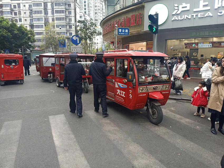 行动中,执法人员“整治+宣传”双线同进。一方面通过“5+2”机制在青云路周边实现全天候巡查,打破三轮车车主“打时间差”的侥幸心理,实现“无死角、无盲区”的严管严控;另一方面,持之以恒地开展宣传,发放800多份资料,向市民、三轮车车主普及城市管理相关的法律政策。