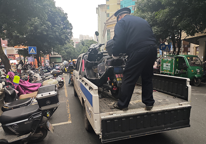 执法人员对违停的车辆进行取证时,有部分车主闻讯前来挪车,对此,执法人员都一一进行了批评教育。随后,执法人员依法拖离了现场12辆违停电动车,恢复人行道通行。