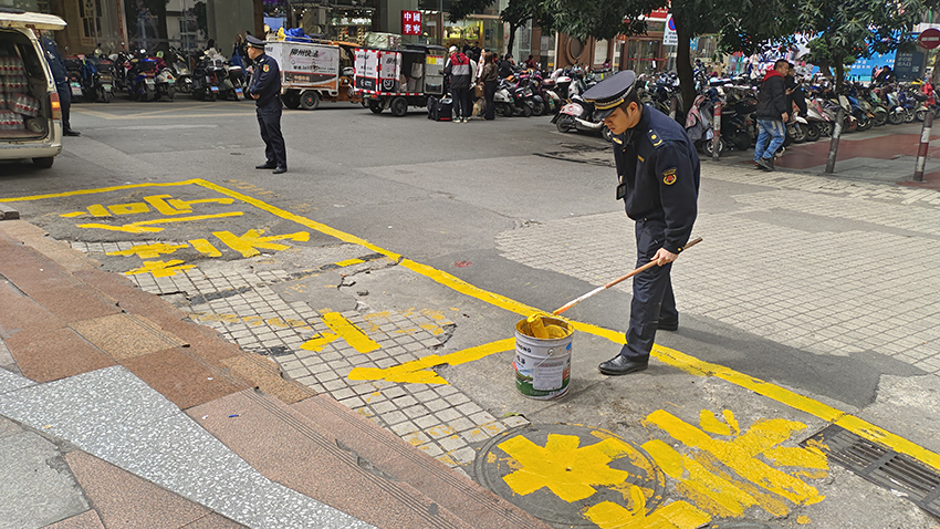 3月18日上午,当天执法人员回到该处路段复查,没有看到有车辆违停。随后,执法人员重新补划了该处的禁停黄线区,让标志更加醒目。