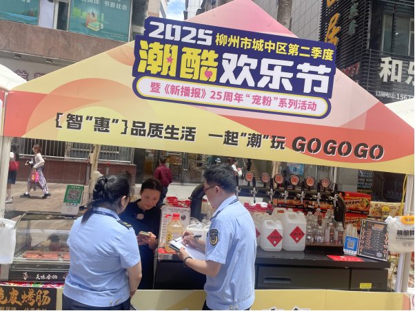 五一假期期间,柳州市城中区第二季度“潮酷欢乐节”暨《新播报》25周年“宠粉”系列美食活动在五星步行街隆重开幕,现场人声鼎沸,热闹非凡,洋溢着节日的欢乐氛围。为确保市民及游客的饮食安全,城中区市场监督管理局精心策划,周密组织,全力投入到食品安全巡查保障工作中,确保活动顺利进行。