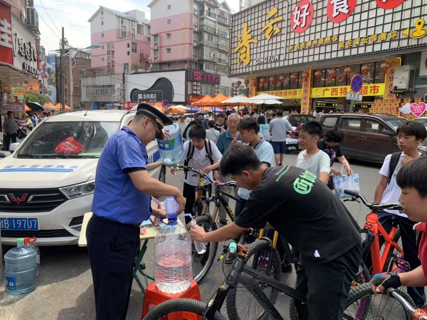 “叔叔,能给我们来杯水吗?”不一会,服务点前又来了几名风风火火的骑行少年。喝完水后,还齐齐回头向执法人员竖起了大拇指。