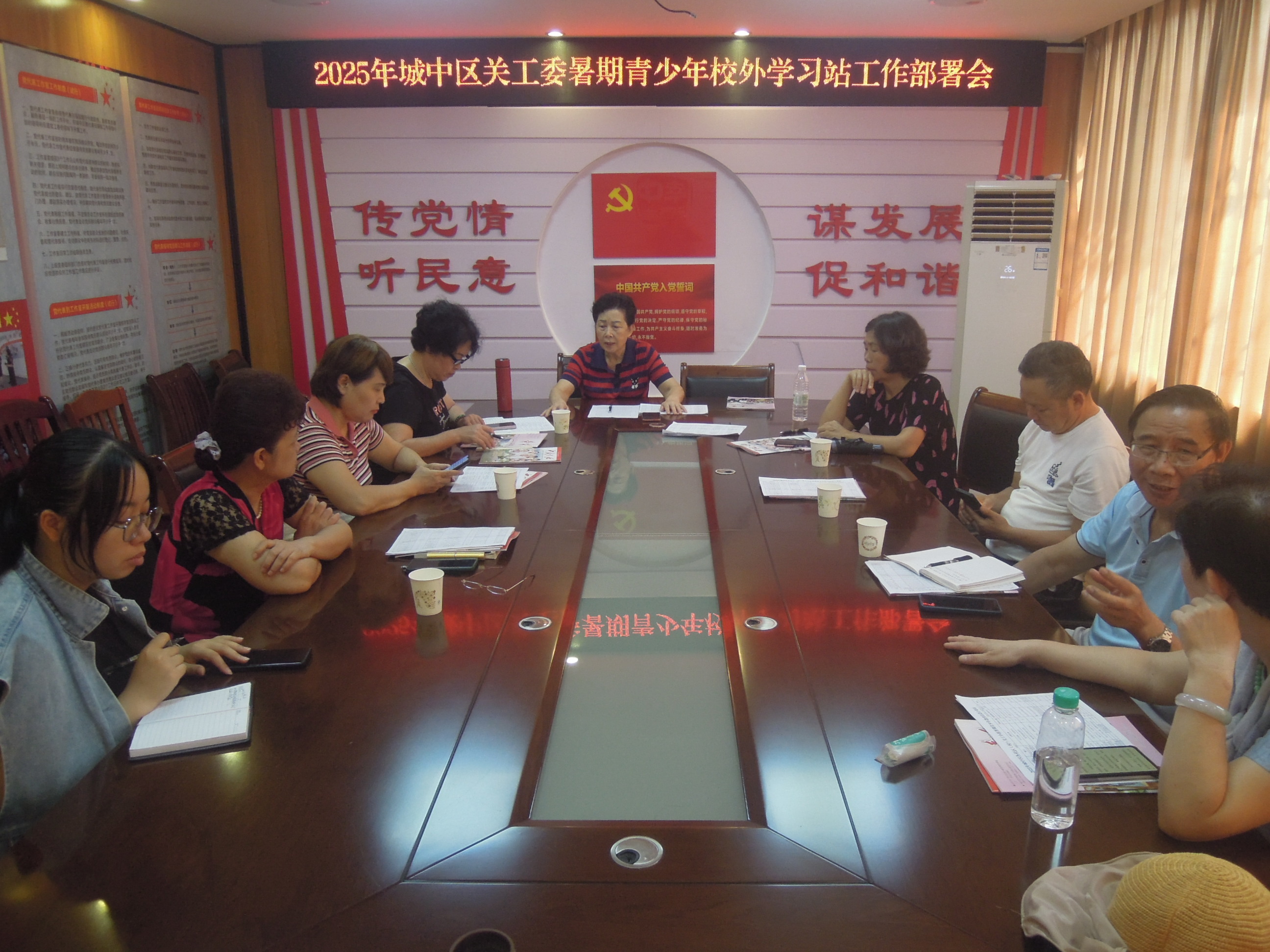 (区关工委办讯 通讯员:程中)6月26日,城中区关工委召开暑期青少年校外学习站工作部署会议,会议要求今年学习站要继续深化“老少同声颂党恩、携手奋进新征程”主题教育实践,开展“青少年党史学习月”,纪念抗日战争胜利八十周年等一系列活动,继续开设寓教于乐的各类兴趣班,把学习站办成青少年学习活动乐园。
