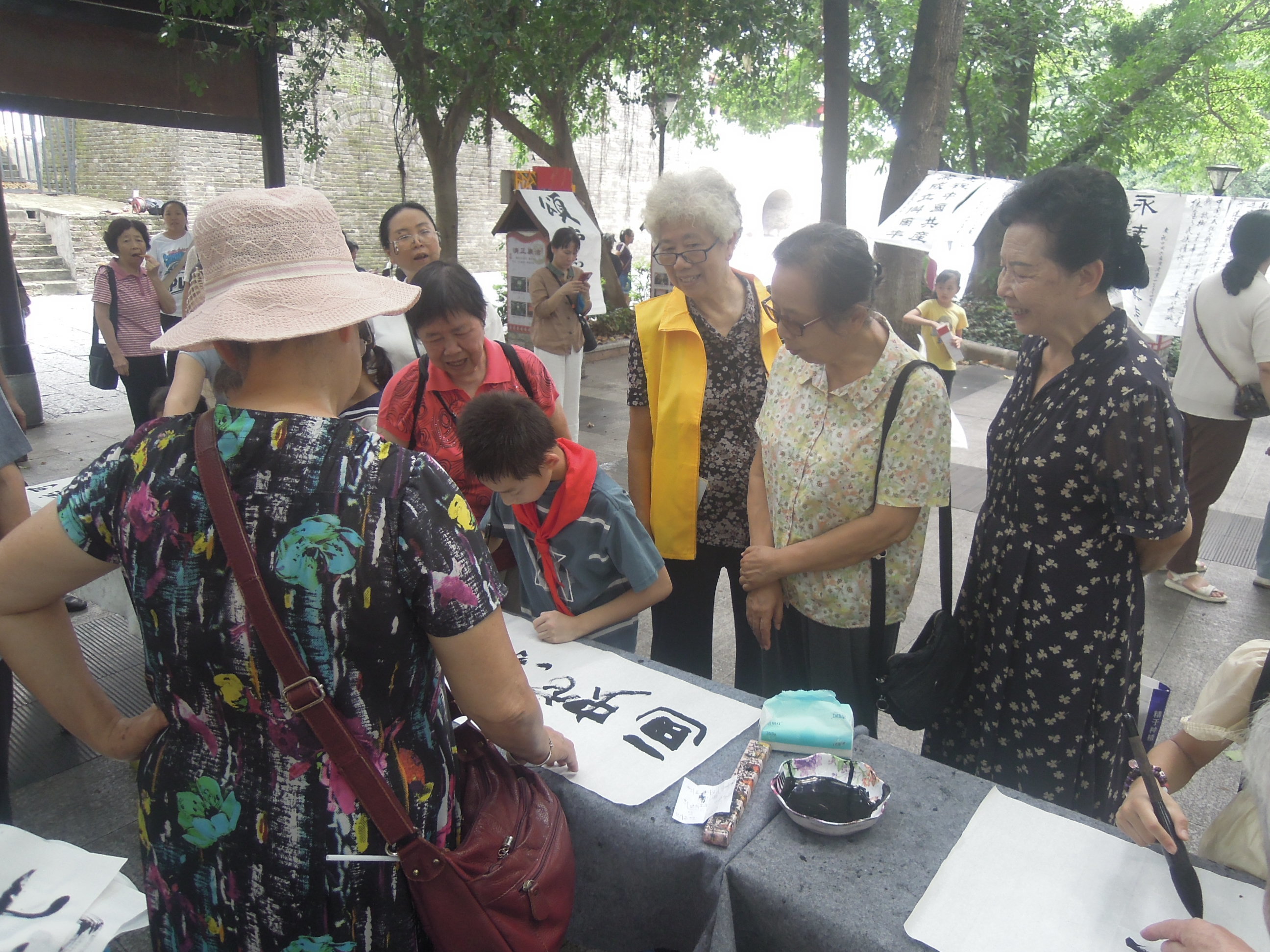随后与会人员来到城门外榕树课堂东门社区青少年校外学习站参观东门社区举办青少年书法培训班和观看城中区“五老”书法爱好者创作20多件的宣传党史的书法作品。