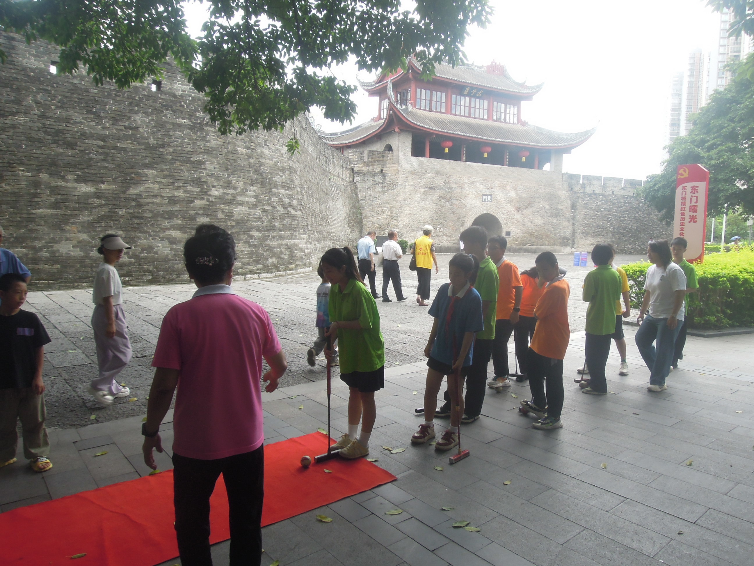 榕树课堂下,城中区和静兰街道关工委还开办少儿门球培训班,4名参加第15届全运会少儿门球赛的小队员和“五老”门球队员,为10多名青少年门球爱好者展示和传授门球技艺。