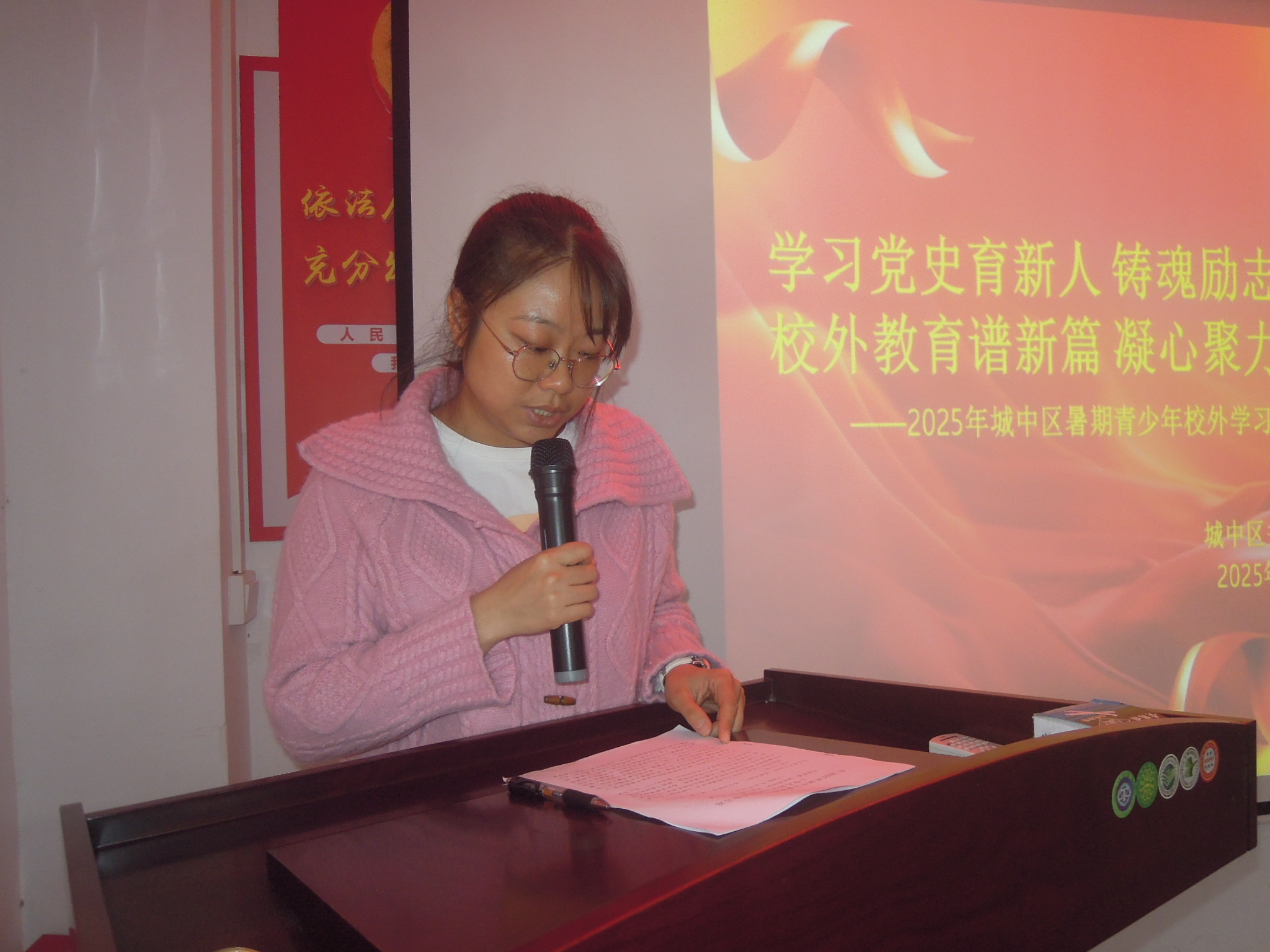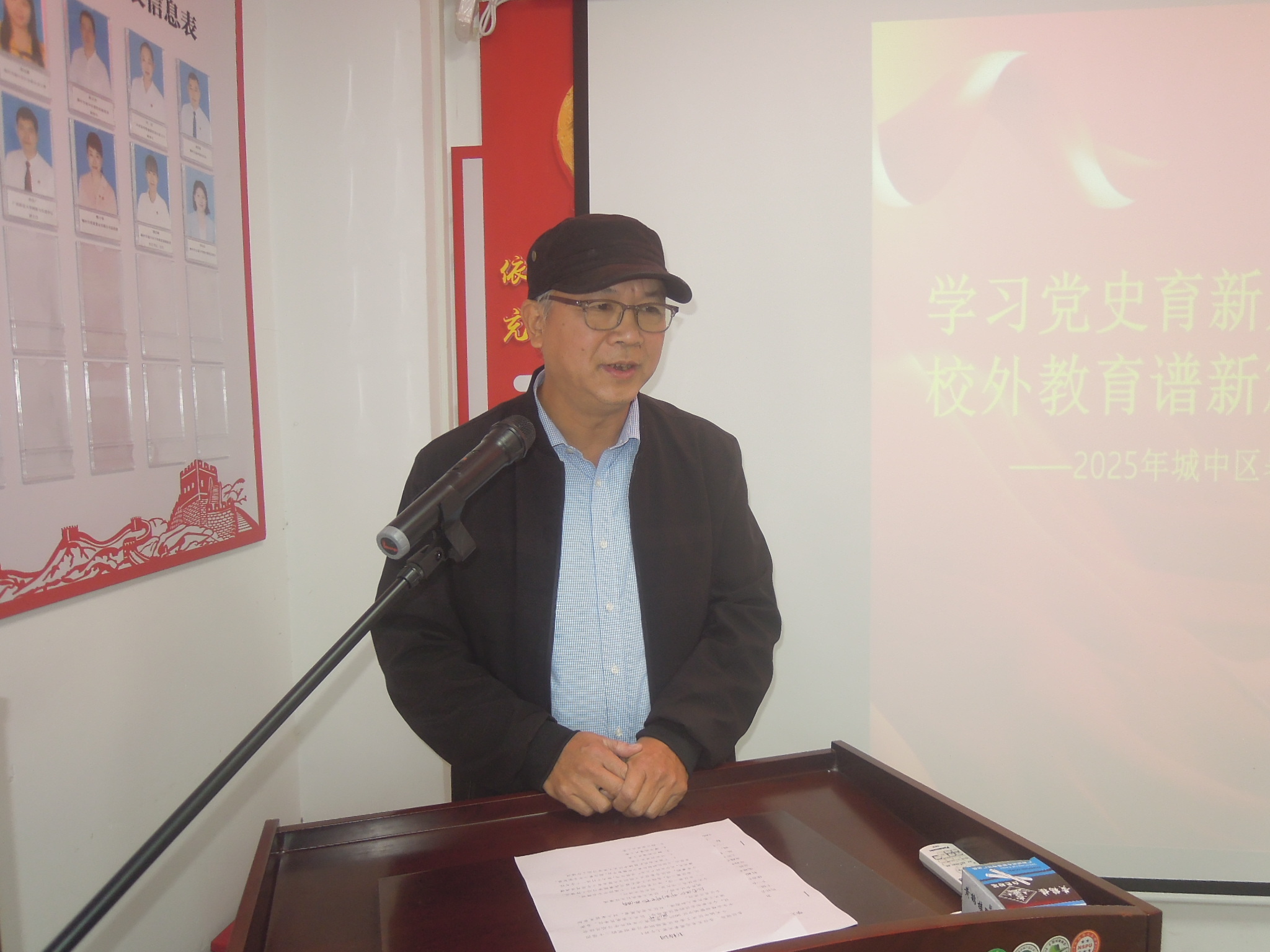唐伟总结了今年暑期城中区学习站工作情况。区关工委围绕习近平总书记关于关心下一代工作的重要指示,牢牢把握“为党育人、为国育才”使命任务,以纪念中国人民抗日战争暨世界反法西斯战争胜利80周年为契机,依托“五老”独特优势,聚焦思想引领、实践育人、安全守护,扎实开展青少年党史国史教育、法治宣传、心理健康、科技素养提升等系列活动,持续擦亮青少年校外学习站品牌。全区37个学习站和7个“五老”工作室精心组织,480名“五老”志愿者、大学生、法律专家、工匠及非遗传承人积极参与,累计开展讲座及实践活动317场,覆盖青少年18665人次,取得了较大育人成效和社会反响。