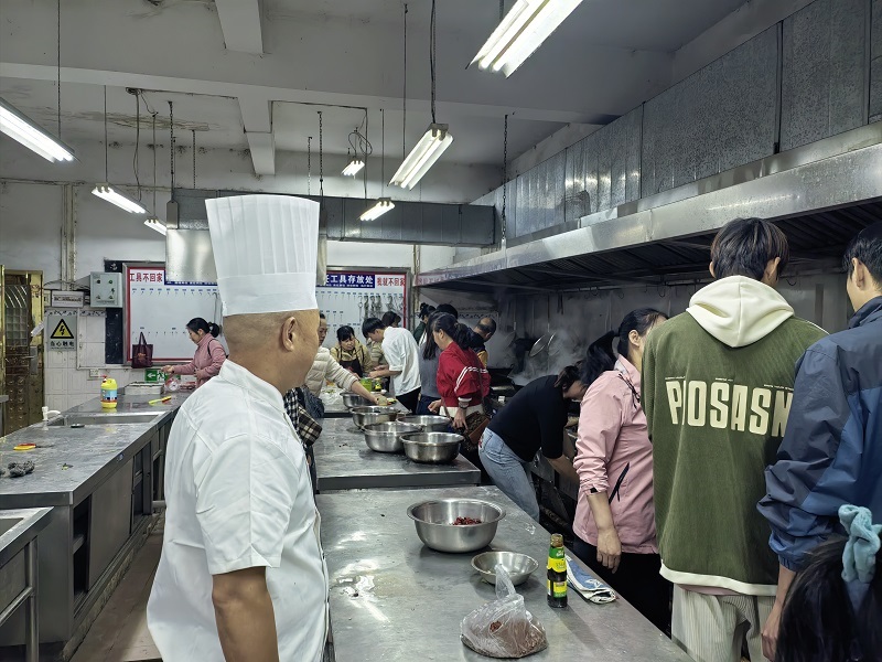 培训班为期7天,采用理论讲解+示范教学+实操演练+ 考核鉴定的一体化教学模式,确保学员听得懂、学得会、用得上。在理论课堂上,专业教师围绕食材选购、营养搭配、食品安全、成本核算等基础知识点展开细致讲解,帮助学员建立系统的知识框架;实操环节中,教师手把手示范各类面点的和面、发酵、塑形技巧,以及家常菜、特色菜的刀工处理、火候把控、调味秘诀,逐一拆解教学。