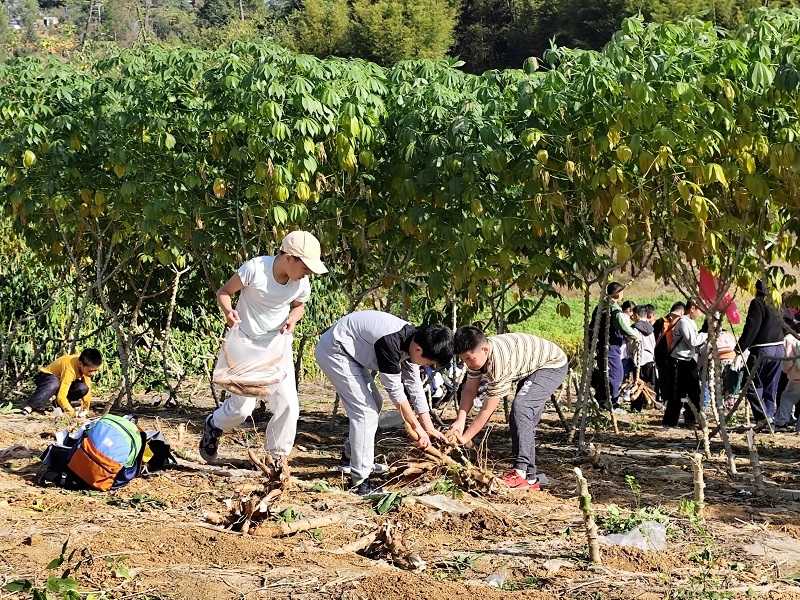 当天上午,柳州市弯塘路小学师生600余人,在基地参观木薯生产车间,并开展了挖木薯的校外劳动实践活动,充分体验农耕劳动与传统技艺。