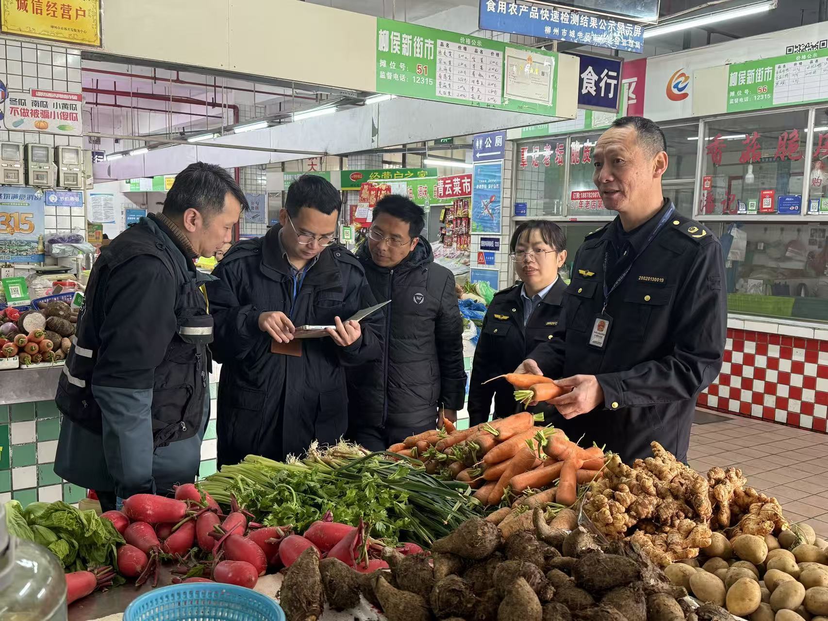 城中区市场监管局执法人员在柳侯市场开展农产品抽检