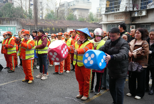 活动现场年味浓郁、暖意融融、热闹非凡。游园区域共设置有蒙眼击鼓、投掷骰子、幸运乒乓球三大趣味项目,兼具娱乐性与互动性,吸引了职工们踊跃参与。其中,蒙眼击鼓考验参与者的手感与方向感,大家蒙眼转圈后奋力挥棒,击中鼓面时的欢呼声响彻现场、此起彼伏;投骰子项目简单易操作,职工们凭运气赢取惊喜,每一次投掷都伴随着期待与喝彩;幸运乒乓球则着重考验专注力,参与者屏气凝神、精准投放,每一次成功都能收获阵阵掌声,整个现场沉浸在欢乐祥和的氛围中。