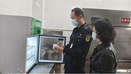 执法人员深入机构食堂,围绕食品经营许可、原料采购索证索票、加工制作、场所卫生、餐用具清洗消毒及食品留样等关键环节开展全流程检查。重点核查食材储存条件、操作流程规范等情况,严防过期变质食品流入餐桌。