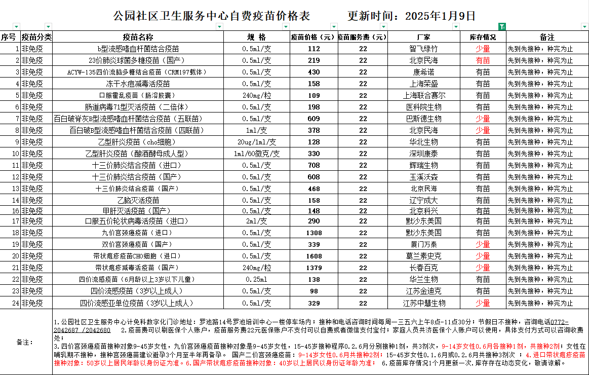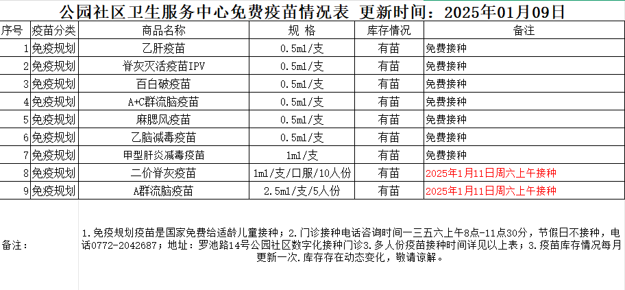 疫苗情况表