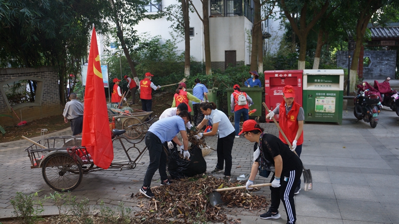 【城中区河东街道讯 清华坊社区通讯员李雄柳报道、摄影】为充分发挥社区党组织的战斗堡垒作用和党员在社区人居环境整治和营造文明氛围工作中的先锋模范作用,10月16日下午,河东街道清华坊社区党委组织社区、河东街道党工委、城中区委组织部、四联双报到单位、小区物业的50余名党员志愿者在清华坊小区开展以“党建引领•清洁家园”为主题的党员志愿服务活动。