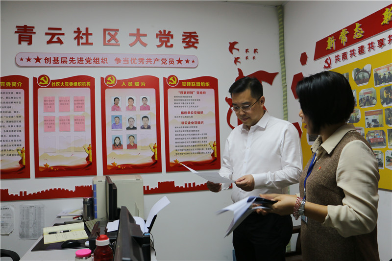 当天下午,在中南街道党工委副书记、纪工委书记朱志星的陪同下,李柳彬区长先后走访了青云、映山、福柳新都、西门四个社区。通过听取汇报、查阅台账、座谈交流、入户走访、实地查看等方式,全面摸排中南街道软弱涣散社区党组织,并对排查情况进行分析,认真填写《城中区软弱涣散社区党组织排查情况分析表》。