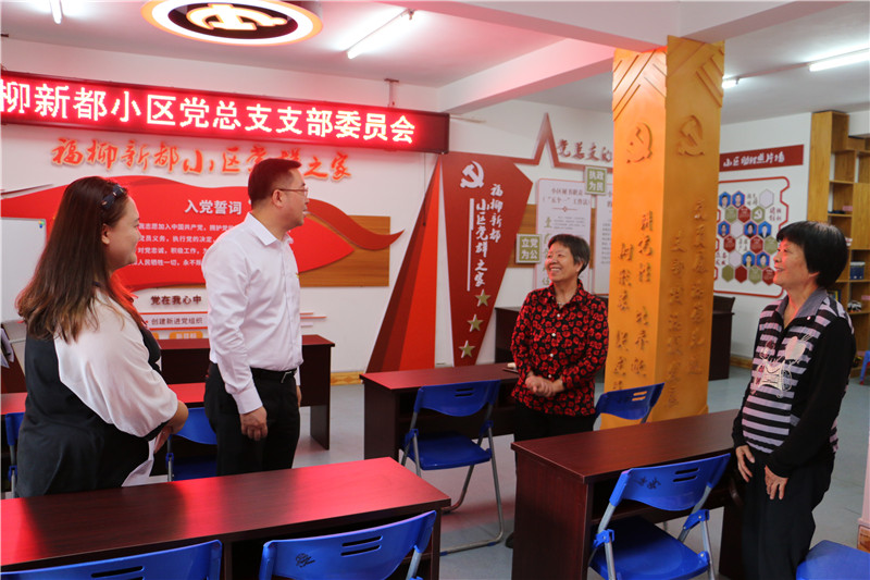 城中区委副书记、区长李柳彬(左二)在福柳新都社区党群之家与居民党员亲切交流