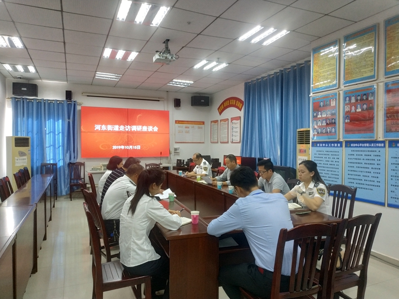 【城中区河东街道讯 街道通讯员唐桃梅报道、摄影】2019年10月15日下午,城中区政府党组成员唐宏虎、城中区劳动保障监察大队大队长喻国建、城中区劳动保障监察大队副大队长韦超辉等一行4人到河东街道办事处开展“不忘初心、牢记使命”主题调研活动。