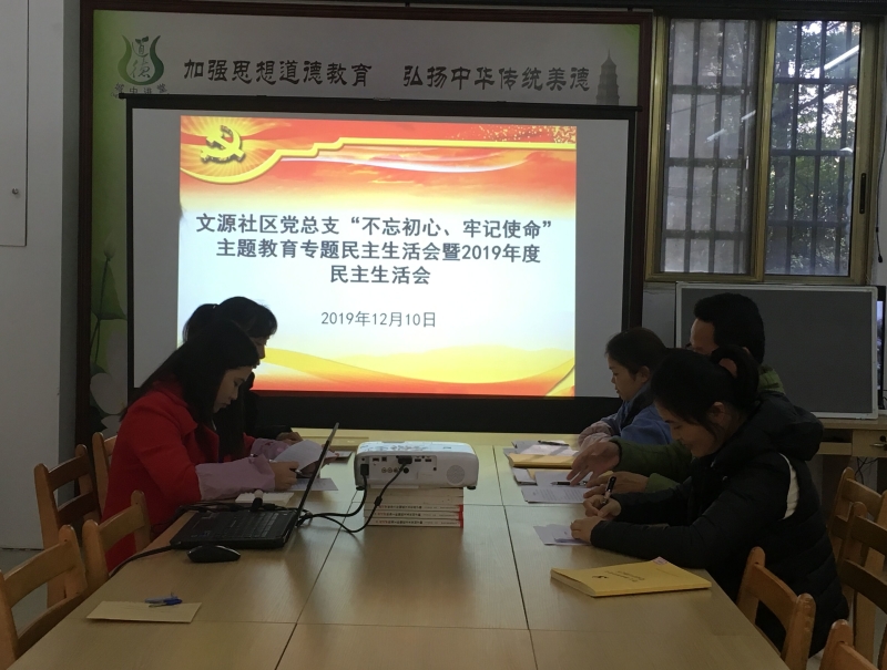(城中区沿江街道办事处讯 通讯员陈薇报道)按照上级党组织关于开好“不忘初心、牢记使命”主题教育专题民主生活会暨2019年度民主生活会的通知要求,2019年12月10日上午,文源社区党总支在社区会议室召开2019年度民主生活会,会议由社区党总支书记赖慧同志主持。