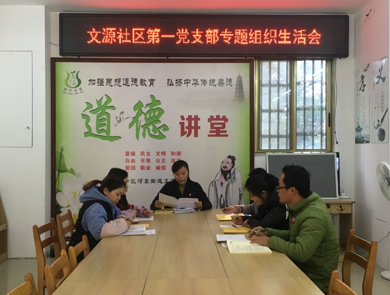 (城中区沿江街道办事处讯 通讯员陈薇报道)为进一步严格党内生活,健全完善党员教育管理机制,保持党员队伍的先进性,增强基层党组织的创造力、凝聚力和战斗力。在市委、城中区委和沿江街道的统一部署下,2019年12月9日上午,文源社区第一党支部在社区会议室召开“不忘初心、牢记使命”专题组织生活会。