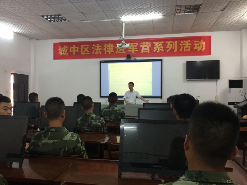 为迎接十九大的到来,8月28日下午,城中区司法局、区双拥办的相关领导同志来到驻区武警某大队,开展“迎十九大送法进军营”活动,受到了部队官兵的热烈欢迎。城中区司法局法律援助中心主任陶世琳、区双拥办、律师事务所2名律师以及部队领导和广大官兵参加了此次活动。