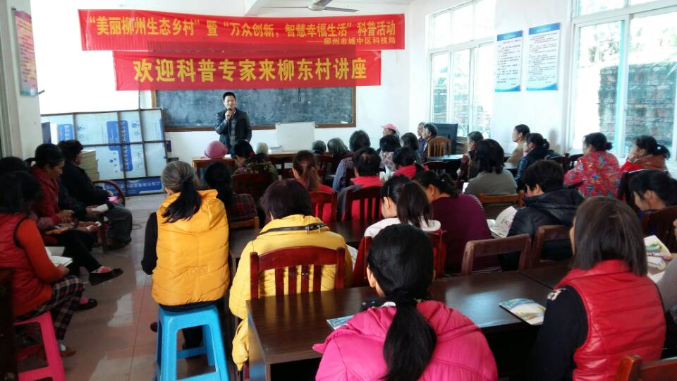 (城中区科协讯 通讯员廖文尔)11月26日,城中区科技局、城中区科协在柳东村举办了一场名为“美丽柳州 生态乡村”暨“万众创新 智慧幸福生活”的科普宣传活动。城中区科技局副局长(城中区科协主席)黄荟霖,出席了此次活动。此次活动邀请了两位专家分别针对生态环境保护和妇女儿童保健进行了详实的授课,深受村民欢迎。讲座结束后还开展了趣味游园活动。活动现场发放“美丽柳州 生态乡村”宣传资料100多本,100多位村民受益匪浅,不仅加强了对预防保健和环保知识的认识,还提高了构建美好生活的信心。今后我们将继续组织动员全区各方资源,联合各部门开展广覆盖、多形式、群众喜闻乐见的科普活动,提高全民科学素质,主动服务和参与到生态乡村建设的“村屯绿化”、“饮水净化”“道路硬化”等专项活动中去,引导和教育民众增强保护生态环境意识,为“美丽柳州生态乡村”作出贡献。