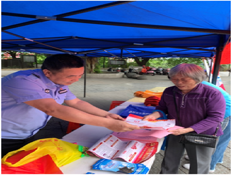 活动现场,工作人员紧紧围绕扫黑除恶专项斗争主题,将扫黑除恶相关的法律法规作为普法宣传重点,通过悬挂横幅、发放宣传资料、现场解答群众法律咨询等形式,向群众广泛宣传黑恶势力的危害性和当前政法部门对黑恶势力的打击决心,鼓励引导广大群众遵守法律法规,踊跃揭发检举“涉黑、涉霸、涉毒”等黑恶势力违法犯罪线索。此次活动共发放宣传资料、普法宣传袋200余份。