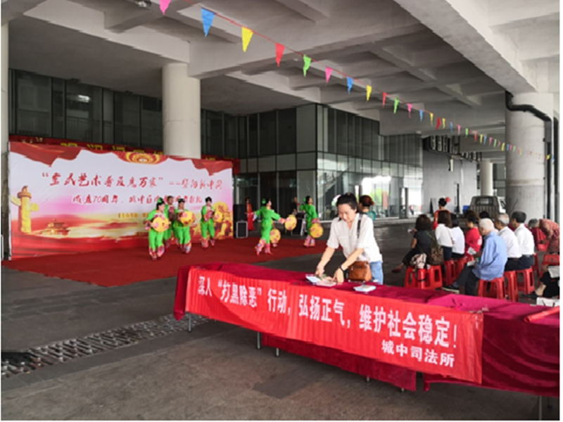 (城中区司法局城中司法所讯 通讯员周璇报道) 为进一步提高居民群众对扫黑除恶专项斗争的认识,扩大扫黑除恶专项斗争宣传范围,营造浓厚的社会氛围,维护社区治安和谐稳定,6月11日,城中司法所联合五星社区在风情港开展扫黑除恶宣传活动。