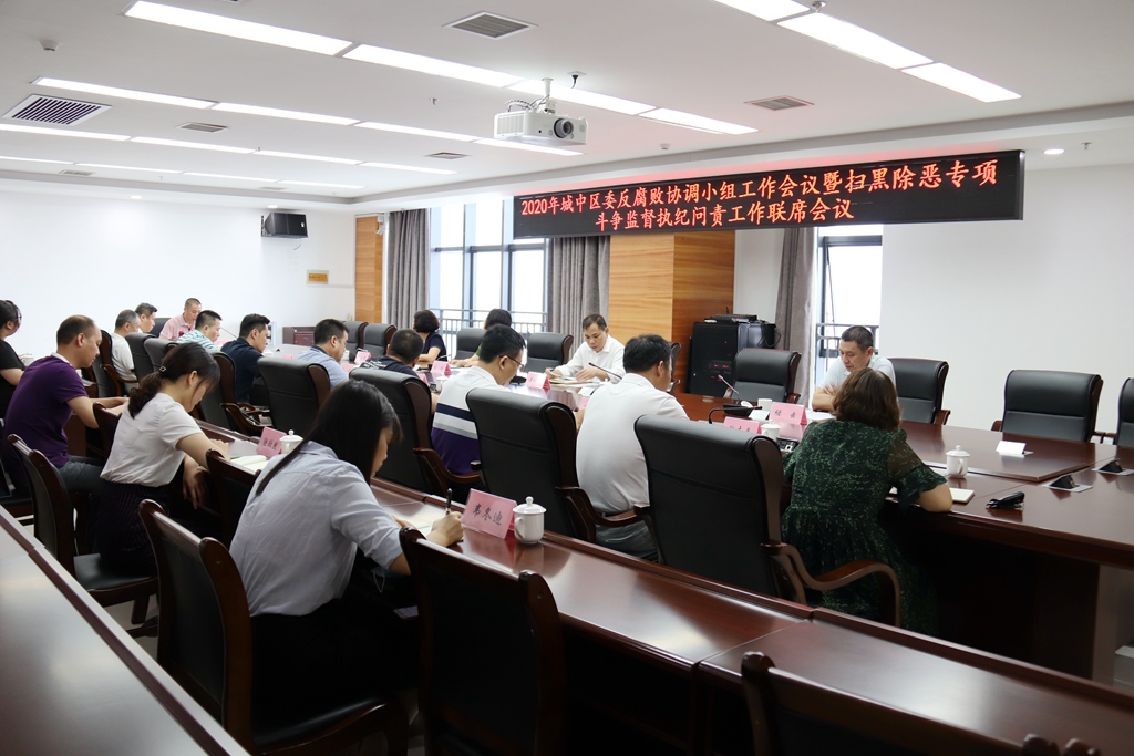 5月13日上午,城中区召开2020年反腐败协调小组工作会议暨扫黑除恶专项斗争监督执纪问责工作联席会议。