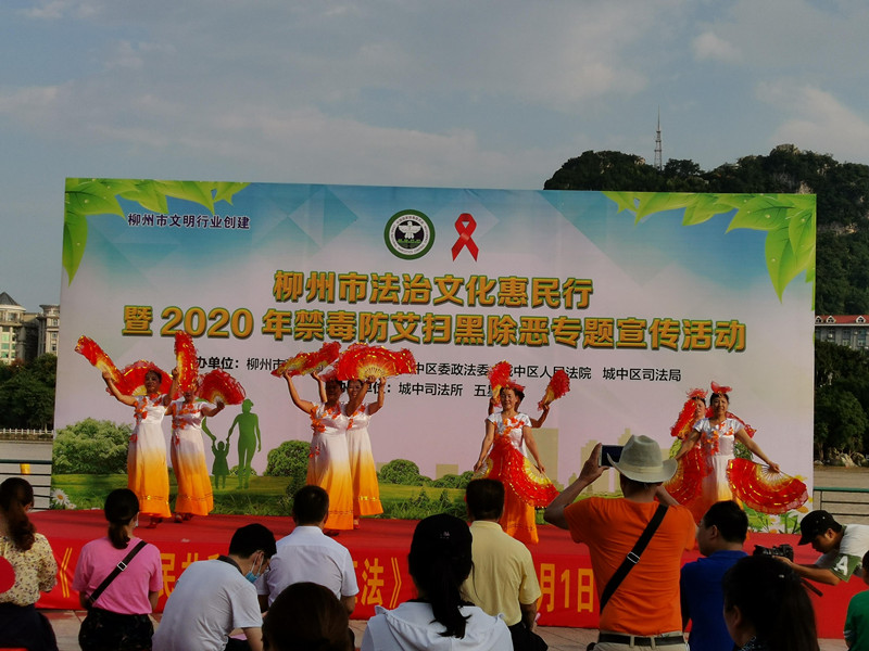 2020年 6月28日下午,柳州市司法局、城中区司法局在柳江文化带法治主题区开展扫黑除恶、禁毒防艾系列法制宣传活动,进一步提升辖区居民扫黑除恶、禁毒防艾法治意识。