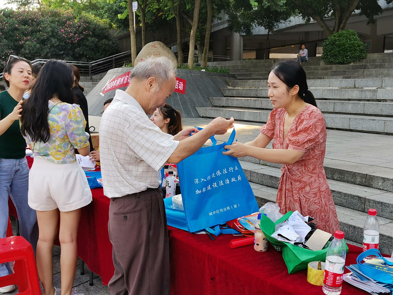 活动同时,穿插开展了现场法律知识抢答活动,城中区司法局工作人员向现场观众发放了扫黑除恶、禁毒、防艾等宣传资料500余份,律师现场为群众提供法律咨询10余人次。