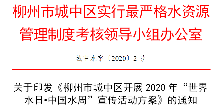 柳州市城中区开展2020年“世界水日”“中国水周”宣传活动方案