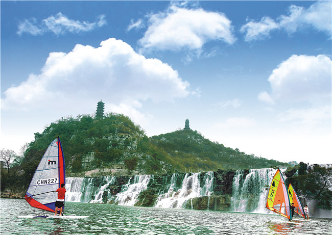 蟠龙瀑布: 以几处小瀑布组合成群,成为罕见的人工瀑布,是柳州建设“百里柳江百里画廊”景观的重要组成部分。人工瀑布工程于2006年9月开工,2007年2月见水。有三级蓄水池。用24台水泵将柳江水从77米水面提升到89.4米后流下,落差约13米。蟠龙山腰瀑布,宽15米,落差25米。踏“磅礴水瀑”,品“山水气魄”,寻“生态之源”,造“山水舞台”,以山水为背景,打造“石之源,川之瀑”,是蟠龙瀑布建设的中心思想,是建设美丽柳江重彩之笔。