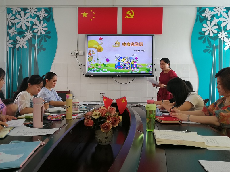 图4:课题组成员邹慧分享交流中四班主题活动《虫虫总动员》中的亮点。